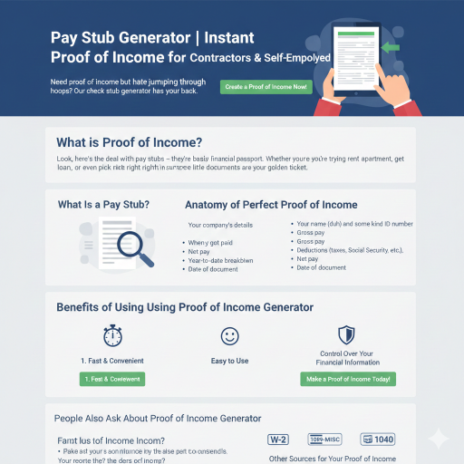 Pay Stub Generator | Instant Proof of Income for Contractors & Self-Employed Need proof of income but hate jumping through hoops? Our check stub generator has your back. Look, we know how tough it can be to show your earnings when you’re working for yourself – especially when banks, landlords, and employers want those perfect […]